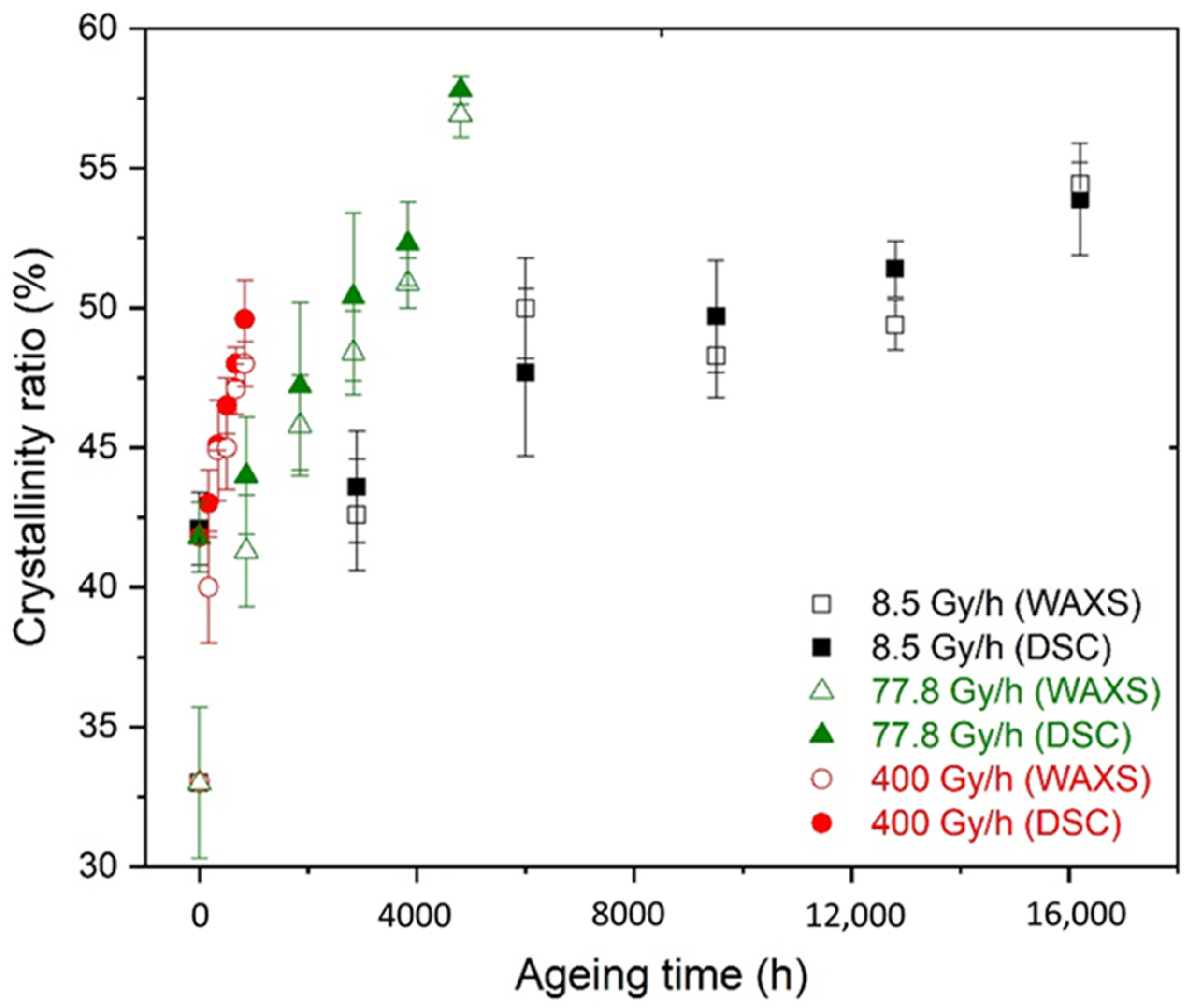Hettal S, Roland S, Colin X. Consequences of Radiothermal Ageing on the Crystalline Morphology of Additive-Free Silane-Crosslinked Polyethylene. Polymers. 2022; 14(14):2912. https://doi.org/10.3390/polym14142912