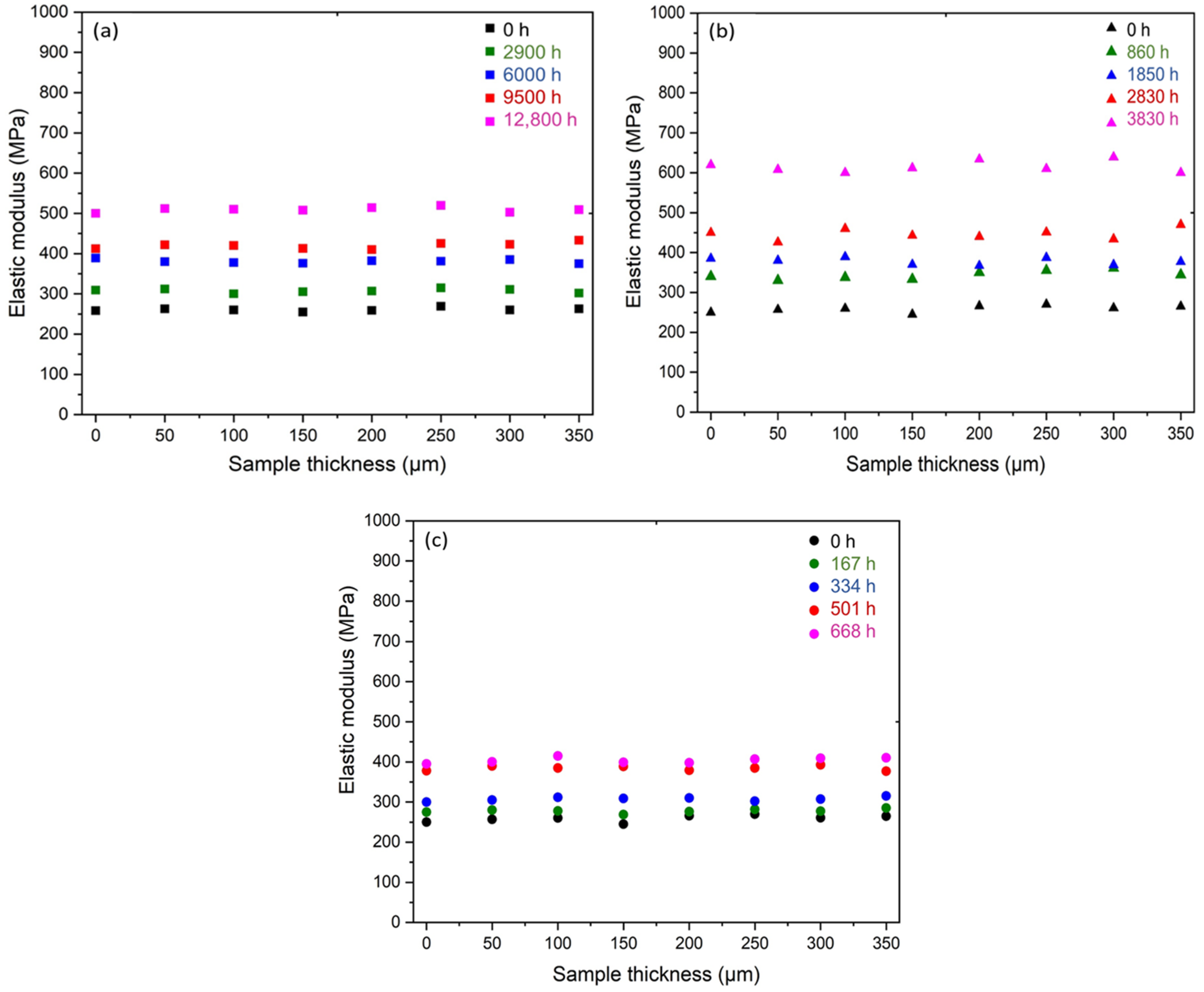 - Hubert, S.; Lame, O.; Séguéla, R.; Vigier, G. A re-examination of the elastic modulus dependence on crystallinity in semi-crystalline polymers. Polymer 2011, 52, 4899–4909. [Google Scholar] [CrossRef]