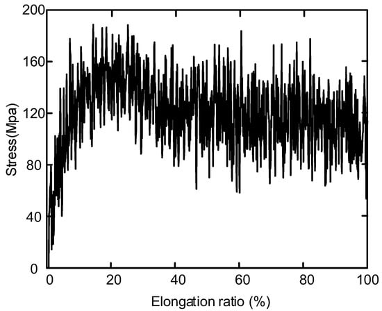 Figure 13 shows the variation of stress and strain in uniaxial tensile simulation of polyethylene. Internal stress relaxation and thermal equilibrium of the system during tensile simulation can lead to stress oscillations. In the range of 0 < strain ≤ 20%, the stress increases rapidly with the increase of strain. This stage is elastic deformation stage, indicating that the material is elastic. When the strain is about 20%, the yield limit is reached. When 30% < strain ≤ 60%, the stress decreases with the increase of strain, and this stage is stress softening stage. When strain > 60%, stress increases continuously.