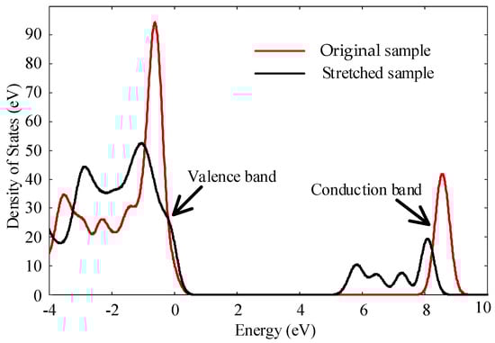Density of states diagram before and after stretching.