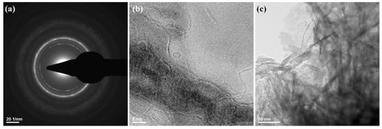 SAED pattern (a) and TEM images (b,c) of HAp powdery sample.