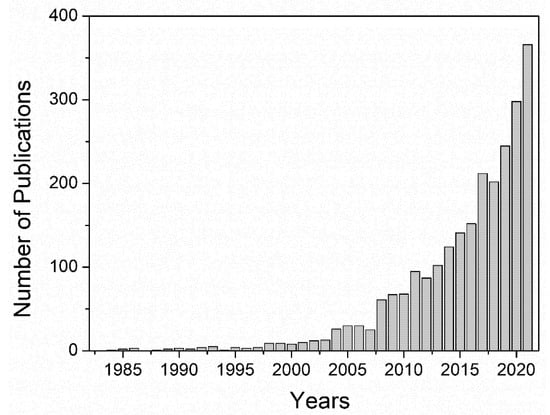 Evolution of the number of publications related to hydrogels. Data obtained from Scopus.