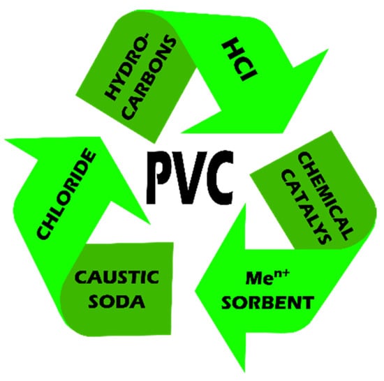 - Zakharyan, E.M.; Petrukhina, N.N.; Dzhabarov, E.G.; Maksimov, A.L. Pathways of Chemical Recycling of Polyvinyl Chloride. Part 2. Russ. J. Appl. Chem. 2020, 93, 1445–1490. [Google Scholar] [CrossRef]