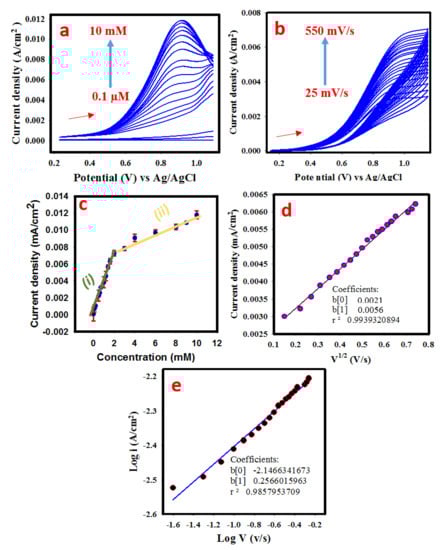 3.7.2. Calibration Curve, Scan Rate, and Response Stability