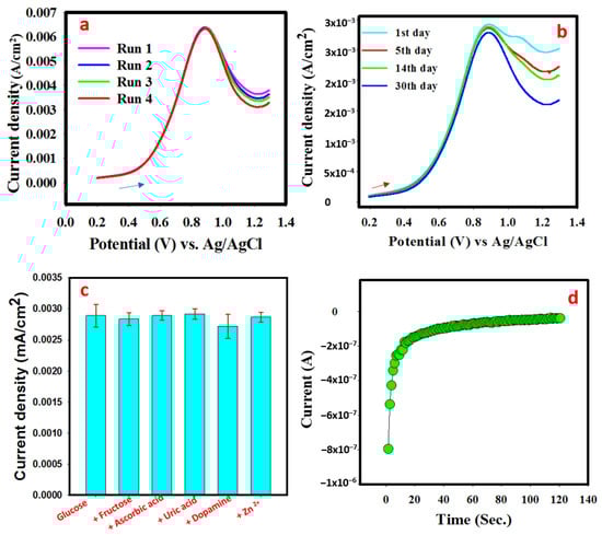 3.8. Comparison with Earlier Reported Glucose Electrochemical Sensor