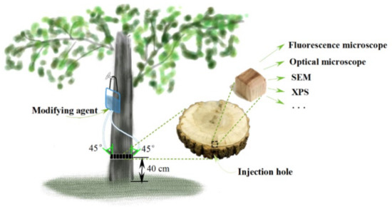 - Liu, Z.; Wang, X.; Zhang, Y.; Wen, L.; Zheng, L.; Cai, L. Flow rate and fixation of ACQ-D preservative in poplar living tree after injection. Wood Sci. Technol. 2019, 53, 373–391. [Google Scholar] [CrossRef]