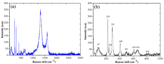 Raman spectroscopy was conducted to evaluate the structure of nanocomposites. Figure 4a shows the Raman spectra of MRGO that consists of RGO and Fe3O4. RGO displays two characteristic band at 1300 and 1500 cm−1 corresponding for D and G band, respectively. Figure 4b shows the Raman scattering peaks at that assigned two A1g and three Eg Raman modes in a typical Fe3O4 structure. In addition, MRGO composite shows seven peaks in the Raman spectrum, namely, two A1g modes (225 and 498 cm−1) and five Eg modes (247, 293, 299, 412, and 613 cm−1). We also observed that the presence of unrepaired defects that persisted after the removal of significant quantities of oxygen-containing functional groups is the explanation that the nanocomposites exhibit greater ID/IG ratios.