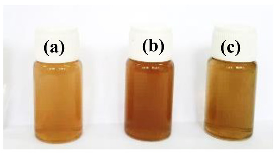 Another important factor for targeted drug delivery applications is a nanomaterial’s dispersibility in water and physiological fluid. The dispersibility of Chi@MRGO and PF127-Chi@MRGO and α-mangosteen -loaded PF127-Chi@MRGO, is shown in Figure 7. 0.5 mg/mL of Chi@MRGO and PF127-Chi@MRGO and α-mangosteen-loaded PF127-Chi@MRGO were dispersed homogeneously. We observed the stability of MRGO after modification with chitosan and PF-127. We observed that the nanocomposites also show good stability and dispersibility. This result might be due to surface modification of chitosan that provided a positive charge on the surface of MRGO.