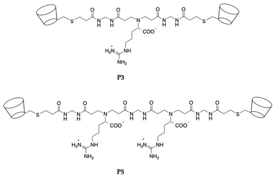 Structures of the P3 and P5 β-cyclodextrin α,ω-end-functionalized PAA oligomers.