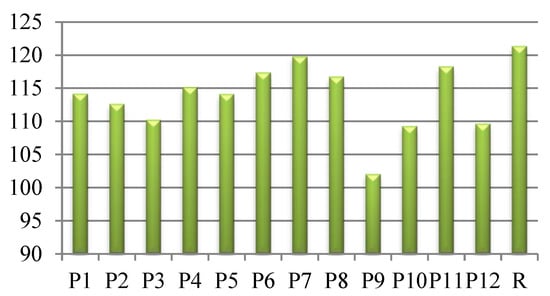 where Rλ—mean reflectance values for each wavelength; Sλ—standard deviation of reflectance values; Vλ—photopic relative luminous efficiency function []. The interpretations of the RUI values are listed in Table 1 [].
