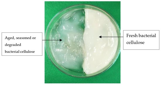 Carbon nanotubes and sodium dodecyl sulfate were obtained from Sigma–Aldrich (Saint Louis, MO, USA). The source of cellulose is a type of bacterial cellulose (BC) hydrogel. BC will degrade naturally in pH 5 and must be filtered and washed with deionized water before being used. The weight-average degree of polymerization (DPw) of bacterial cellulose remained in the range of 14,000 of 16,000 during cultivation at pH 4, but at pH 5, the DPw decreased from 16,800 to 11,000. Figure 1 shows the fresh BC and degraded BC. Sodium bromide was purchased from SYSTERM.