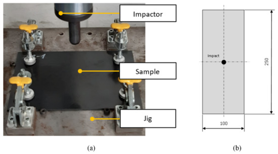 Impact on the specimen; Experiment (a); Impact sample (b).