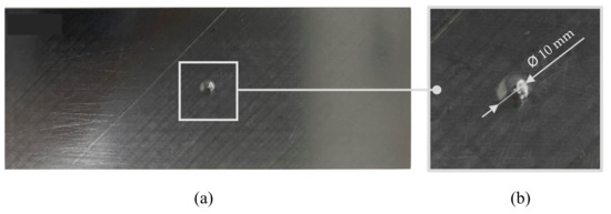 Specimen after impact E = 10 J; Overall specimen view (a); Detailed view (b).