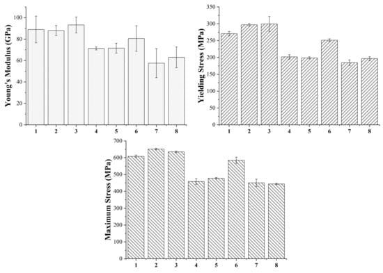 Figure 8. Similar results were already acknowledged for the tensile properties of FDM 3D printed polymers such as ABS (acrylonitrile butadiene styrene) [