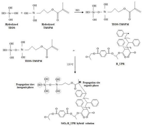 Proposed reaction mechanism of SiO2–R-UPR hybrid solution by sol-gel process.