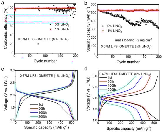- Jiao, S.; Ren, X.; Cao, R.; Engelhard, M.H.; Liu, Y.; Hu, D.; Mei, D.; Zheng, J.; Zhao, W.; Li, Q. Stable cycling of high-voltage lithium metal batteries in ether electrolytes. Nat. Energy 2018, 3, 739–746. [Google Scholar] [CrossRef]