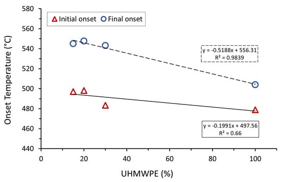 36]. The sample mass of the composites remained constant at temperatures above 550 °C, effectively allowing for a verification of the actual UHMWPE content.
