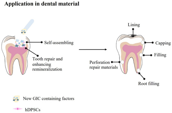 The current concept of regenerative dentistry leads to a lot of interest in developing new restorative materials. Dental biomaterials mimicking biological strategies, including reducing cell death and promoting hard tissue regeneration, are required for this concept [1]. A tooth experiencing severe loss of its structure from aggressive conditions, such as deep caries that nearly expose the pulp, may require a dental lining material with a protective or regenerative property (see in Figure 1) [2].