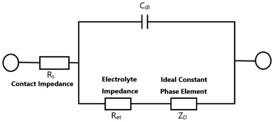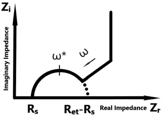 Normally, the characterization of electronic and ionic conductivity is one of the most required steps in polymer electrolyte application [2]. In the traditional process, this measurement can not avoid contacting the electrolyte sample with testing electrodes by using AC impedance spectroscopy [3,4,5]. The measured complex impedance can be traced in the Nyquist plot shown in Figure 1. The semicircle in the complex impedance plane could represent the ideal impedance of the electrolyte. With the characteristics of the Nyquist plot, the ionic conductivity can be derived by using an equivalent circuit model shown in Figure 2.