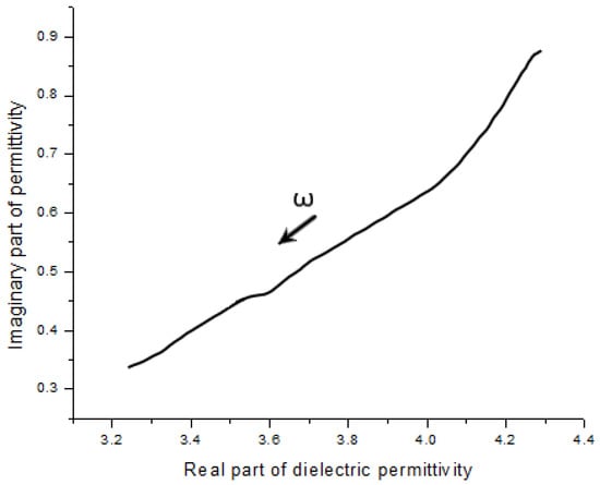 At low frequency, from dc to 100 Hz, the polymer electrolyte is required to perform high electrode polarization as an ionic conductive material [13]. From the loss tangent plot in Figure 8b, the peak was present at a frequency of around 2 KHz. For comparison with traditional ionic conductivity, the Nyquist plot is used to show the peak frequency is consistent. In polymer electrolytes, lithium ionic relaxation employs the ions as a single-ion carrier [14]. Moreover, the loss tangent peak could help to analyze the ionic relaxation time and diffusion activation energy at a different temperature [15]. Because the ionic relaxation is dominated in this solid electrolyte at a frequency from 8.2 GHz to 40 GHz, the dielectric permittivity decreases as the frequency goes up in this range.