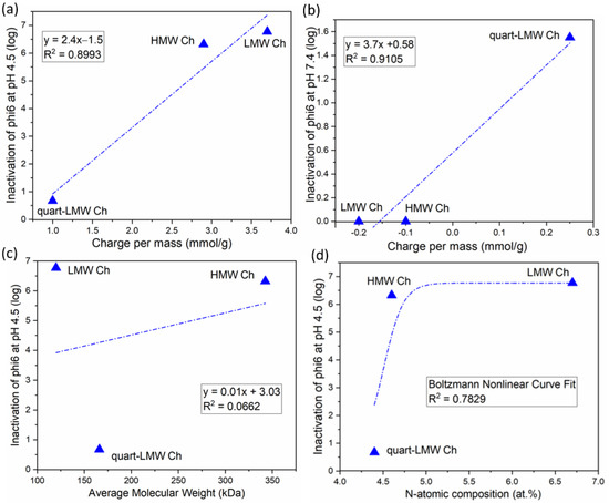 - Kochkina, Z.M.; Surgucheva, N.A.; Chirkov, S.N. Inactivation of Coliphages by Chitosan Derivatives. Microbiology 2000, 69, 261–265. [Google Scholar] [CrossRef] [PubMed]