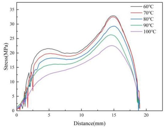 Average stress distribution at different melt temperatures in the MD simulation.