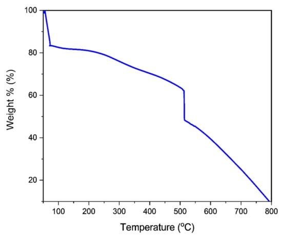 TGA graph representing the temperature-dependent thermal breakdown of PPy-PEI.