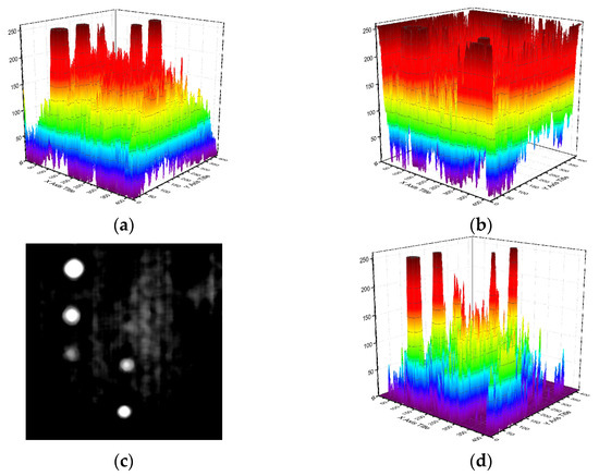 For further explanation, the signal intensity representing the grayscale of pixels is presented in Figure 8. Figure 8c shows the FDTI obtained by subtracting the 10th and 275th frame 1st DTI, which are before and after the grayscale inversion, respectively. From the comparison of Figure 8a,b,d, the identification of defects in FDTI is well enhanced while the SNR is truly improved in FDTI.