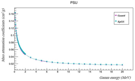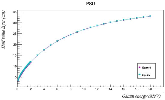 The results of Geant4 agree very well with those found using EpiXS, where the difference between them was found to be less than 1%. The half-value layers of PSU were estimated using both Geant4 and EpiXS, as listed in Table 3 and illustrated in Figure 4.