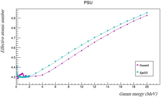 The effective atomic numbers of PSU with the investigated gamma energies using both Geant4 and EpiXS.