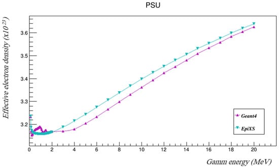 The effective electron densities of PSU with the investigated gamma energies using both Geant4 and EpiXS.