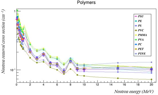 In addition, many studied polymers have high thermal neutron cross-sections and high sensitivities to neutron particles, which make them good neutron-shielding materials as well [,,]. The shielding of neutrons and gamma rays is always a major concern, because any material that effectively attenuates neutrons and gammas, attenuates all other types of radiation effectively.