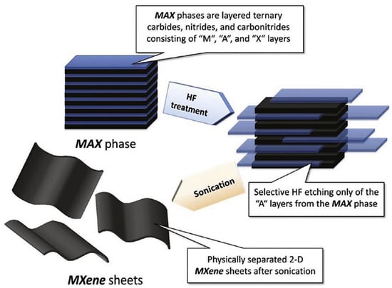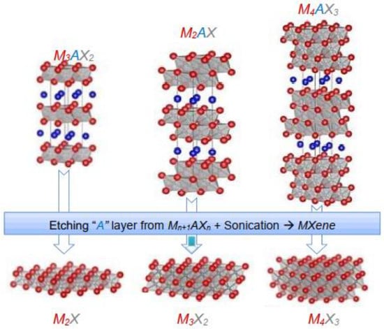 - Naguib, M.; Mochalin, V.N.; Barsoum, M.W.; Gogotsi, Y. 25th anniversary article: MXenes: A new family of two-dimensional materials. Adv. Mater. 2014, 26, 992–1005. [Google Scholar] [CrossRef]