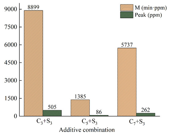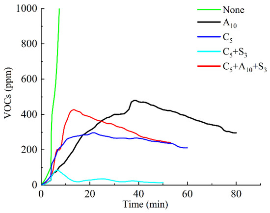 - The overall trend of VOCs emission curves of environmentally friendly modified asphalt at different temperatures is consistent. The increase in temperature is beneficial to improving the inhibitory effect of surfactant on VOCs but has no obvious effect on the adsorption capacity of activated carbon.