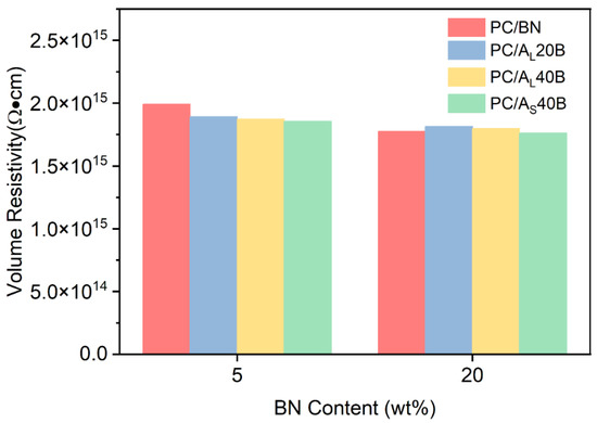 The volume resistance of PC/BN and PC/Al2O3/BN composites.