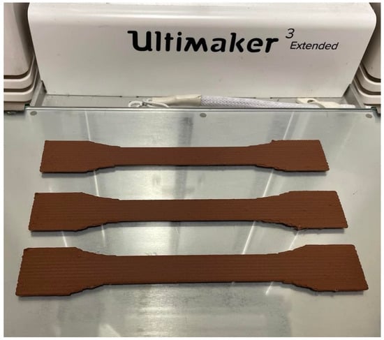 Copper-reinforced PLA filaments with 2.85 mm diameter were purchased from PrimaCreator (Malmö, Sweden). The specimens were produced by an FDM-type 3D printer, namely Ultimaker 3 Extended (Ultimaker B.V., Geldermalsen, Netherlands). CAD geometries of tensile specimens were drawn in the Salome 9.3 and exported as .stl files. The desired process parameters such as slicing speed, temperature, layer thickness, etc., were applied by the Ultimaker Cura 4.6.0 (Ultimaker B.V., Geldermalsen, The Netherlands) in G-codes. The process parameters are provided in Table 1. For slicing strategies and reducing trial-and-error iterations, thereby a sustainable production, we refer to [].