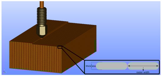 Representation of the raster width and layer thickness parameters.