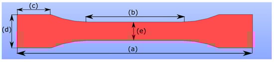 Tensile test specimen geometry is designed according to ISO 527-2. The specifications are given in Table 4. The symbols, a, b, c, d, e denote overall length, gauge length, length of grip section, width at ends, width at narrow portion, respectively.