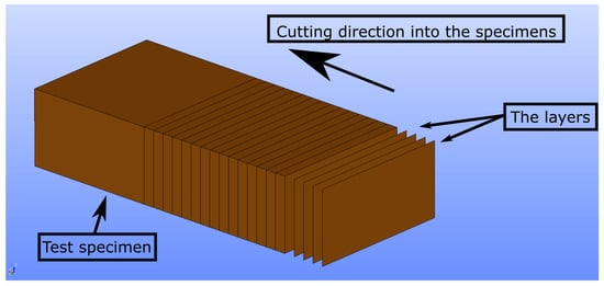 Leica Wild M3C Heerburg-type polarized microscope was used for microscopy analysis. We examine how various process parameters affect the inner structures. One sample of each configuration (see Table 3) was cut in the middle. Manual cutting was preferred rather than milling because heat generation may alter the phases of the inner structure. Then, thin layers from the surface were sliced by using a rotary microtome, namely CUT 4055 (Micro Tec Laborgeräte GmbH, Walldorf, Germany). We illustrate in Figure 8 how we sliced the layers from the surfaces and reached the specimens’ inner parts. The layers from different positions (see Figure 8 for layer positions) were examined by means of microscope, and the images were saved as .png files. Totally, 182 microscopy images were taken. We provide an example analysis in Figure 9.