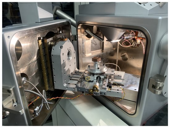 Scanning electron microscopy (SEM) was carried out using a CamScan MaXim 2040 microscope (CamScan Electron Optics Ltd, Cambridge, UK), and energy dispersive X-ray spectroscopy (EDS) was performed by Bruker XFlash 6 30 detector (Bruker Nano, Berlin, Germany). The acceleration voltage was 30 kV. The EDS analysis was utilized with ESPRIT 2.0 software (Bruker Nano, Berlin, Germany). We provide a photo of the used SEM equipment and the specimens during preparation in Figure 10.
