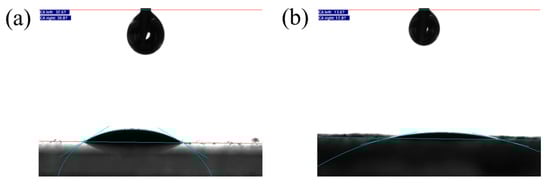 The prepared AgNWs and AgNW@ZnO fillers were respectively coated on glass plates to form thin films, and their static contact angles with epoxy resin were estimated. Images of the contact angle test are shown in