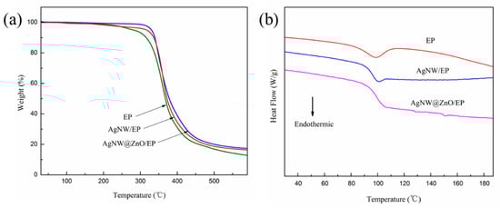 Figure 10). The DSC data also indicate the higher thermal stability of the AgNW@ZnO/EP composite.