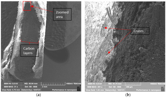 21]. They can also help determine the fiber size, resin-rich or resin-poor matrix regions, and other defects, which can reach values of 15.1% for continuous carbon fiber polyamide cCF/PA parts and 12.3% for cGF/PA parts.