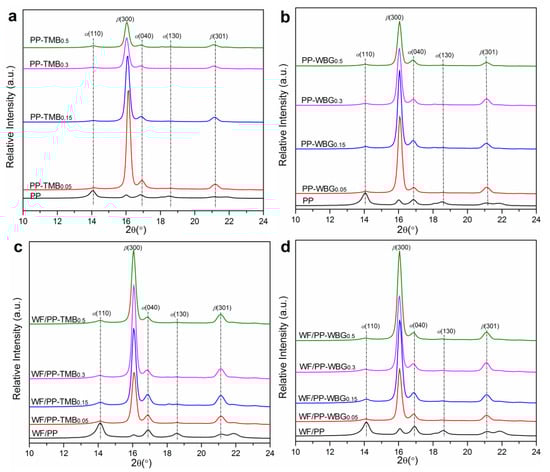 3.1. Polymorphic Composition in the β-Nucleated PP and WF/β-Nucleated PP