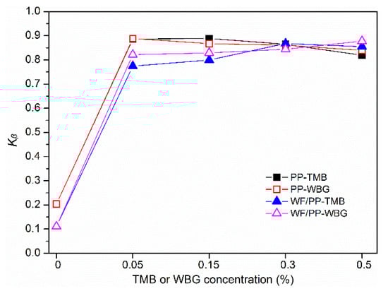- Huang, L.; Wang, H.; Wang, W.; Wang, Q.; Song, Y. Non-isothermal crystallization kinetics of wood-flour/polypropylene composites in the presence of β-nucleating agent. J. For. Res. 2016, 27, 949–958. [Google Scholar] [CrossRef]