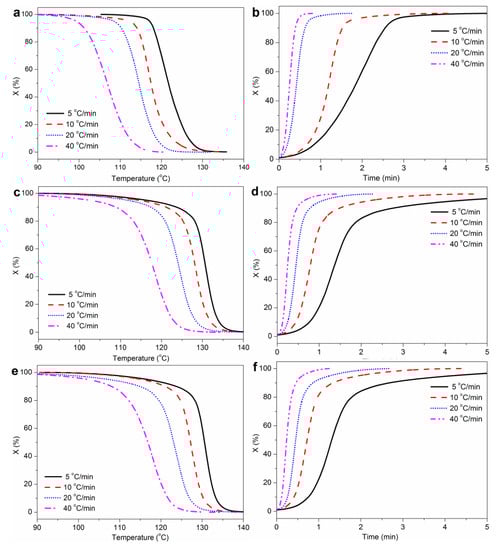 3.3. Non-Isothermal Crystallization and Melting Behaviors
