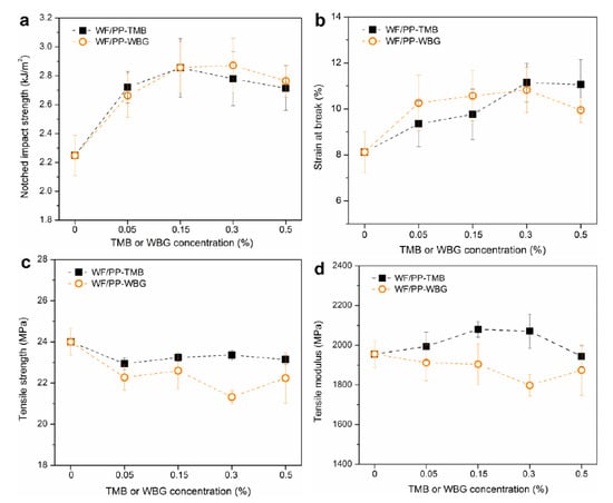 - Luo, S.; Cao, J.; Peng, Y. Properties of glycerin-thermally modified wood flour/polypropylene composites. Polym. Compos. 2013, 35, 201–207. [Google Scholar] [CrossRef]