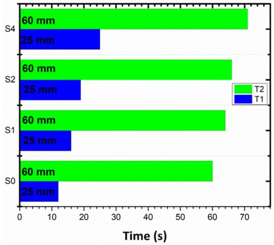 Increase in flame retardancy upon addition of m-sepiolite from S0–S4 samples in terms of T1 and T2.