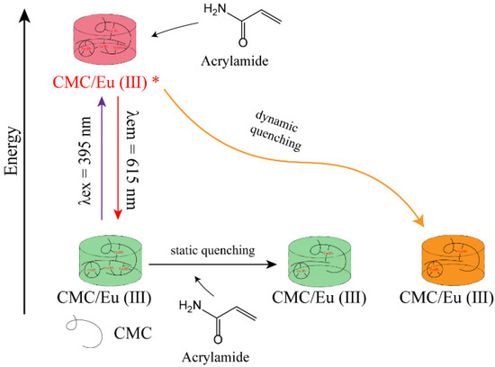 Possible quenching mechanism of CMC/Eu (III) fluorescent probe. CMC/Eu (III) *: the excited state of CMC/Eu (III).