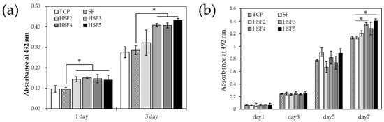 3.1. SF-Heparin Conjugation Reaction Confirmation